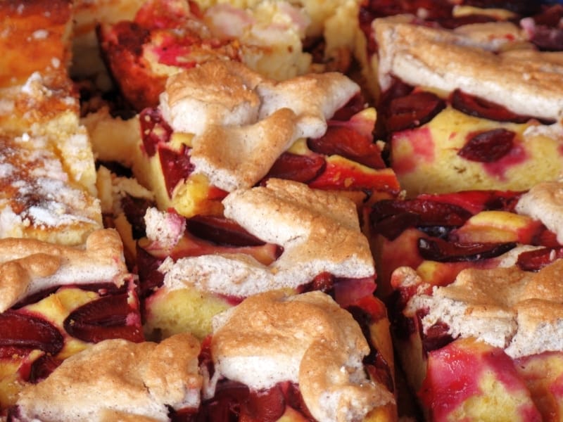 The Germans, Poles, and Czechs make their plum cakes on a yeasted cake base, sometimes topped with streusel or meringue.
